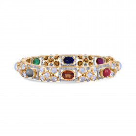 | Item Narration | Kundan Polki Uncut Diamond & Rainbow Gem Bangle Bracelet |