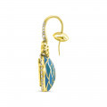 These custom Indian 18k gold earrings showcase free form Polki diamonds in a decadent drop setting. Halos of glittering round brilliant cut diamonds and a lotus design of rich blue gold trim enamel gives these lavish earrings a detailed appearance, all set on tapered French hooks with a stopper on the back for added security.