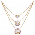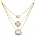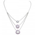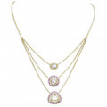 This stunning Indian graduated triple layer necklace is finely crafted in brightly polished 18k gold and features a lotus lilac/purplish-pink gold trim enamel with round brilliant cut diamond halos