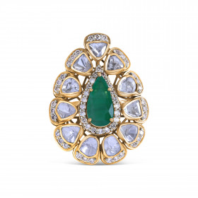 Polki Kundan Uncut Diamond & Emerald Pear Cluster Ring